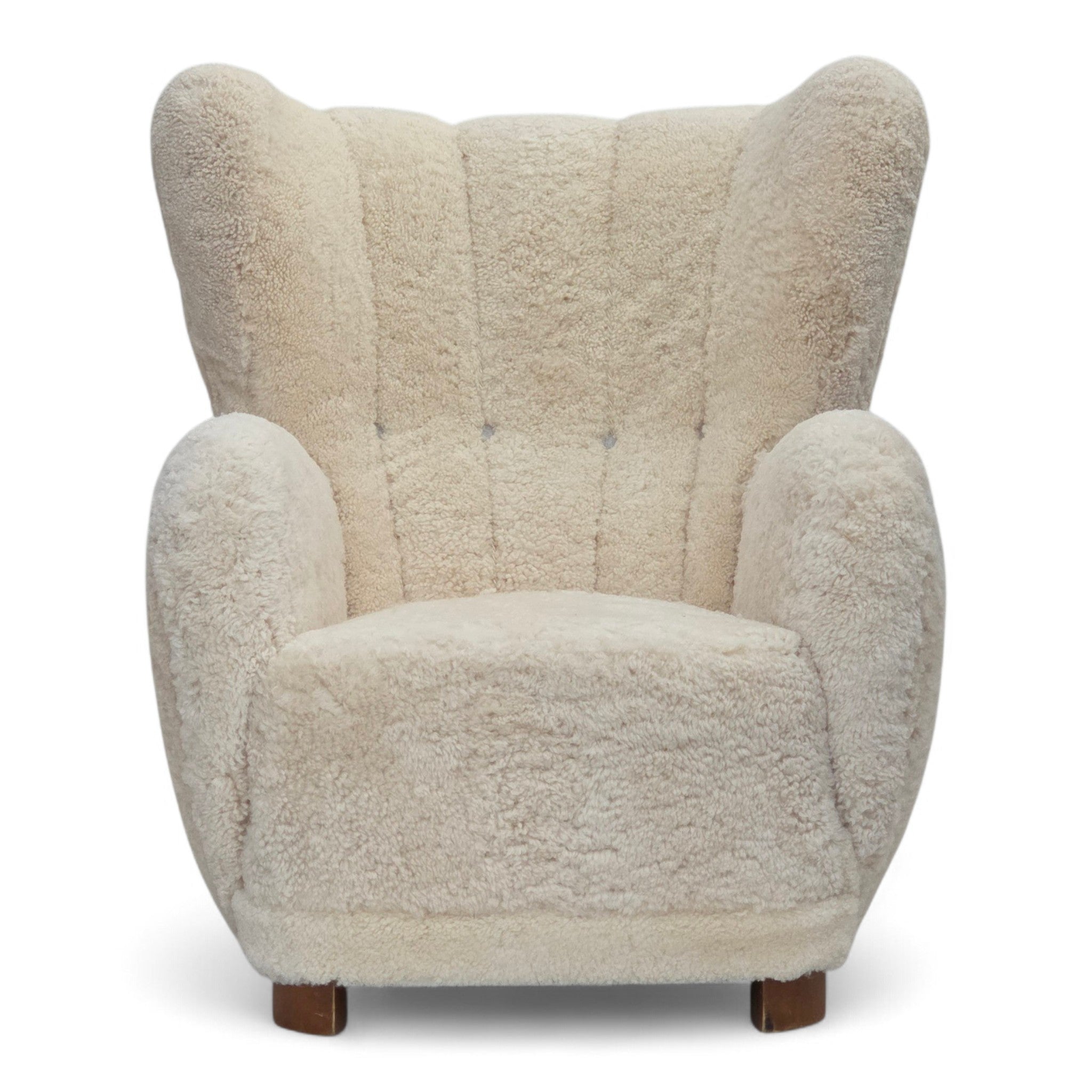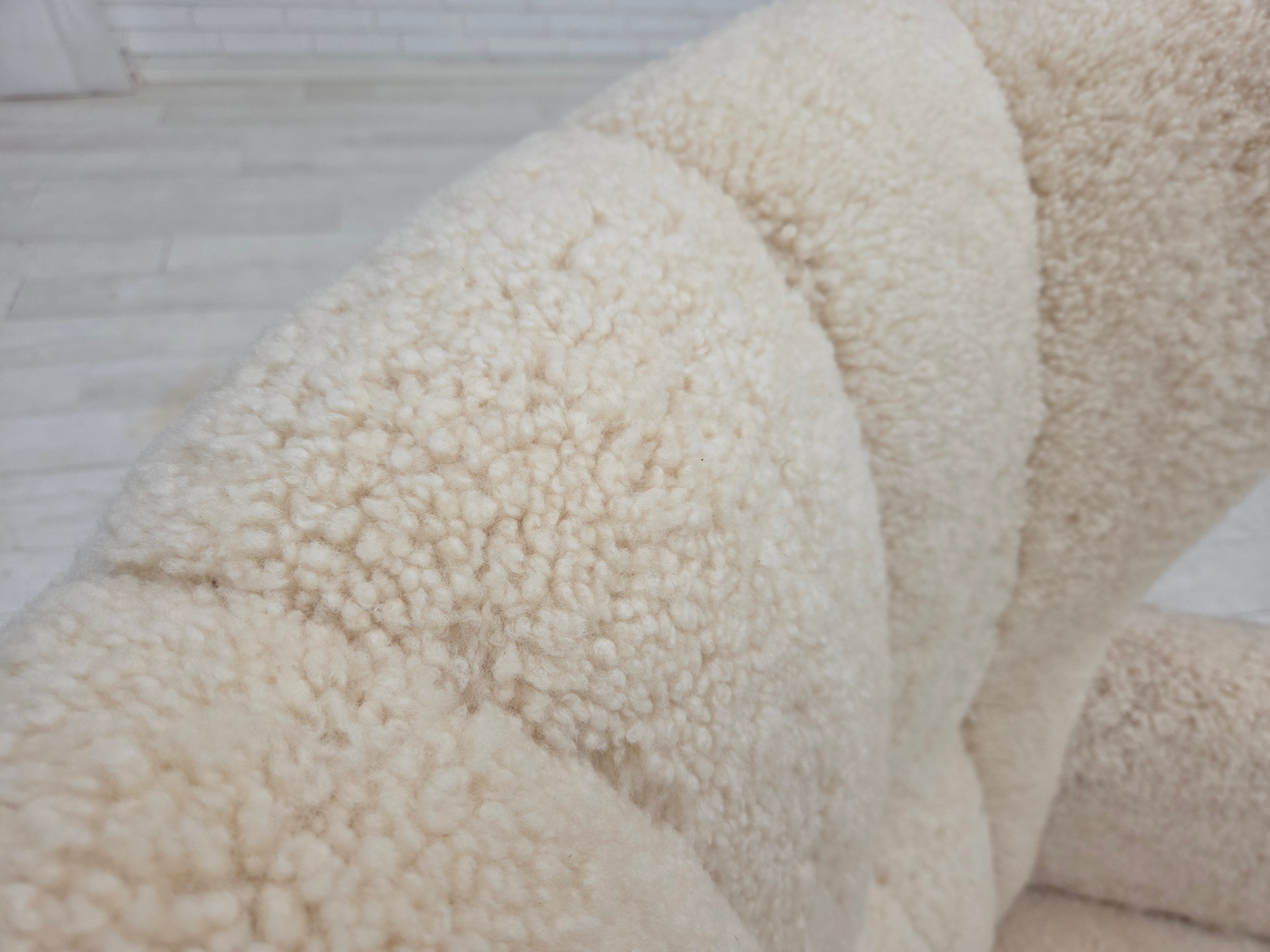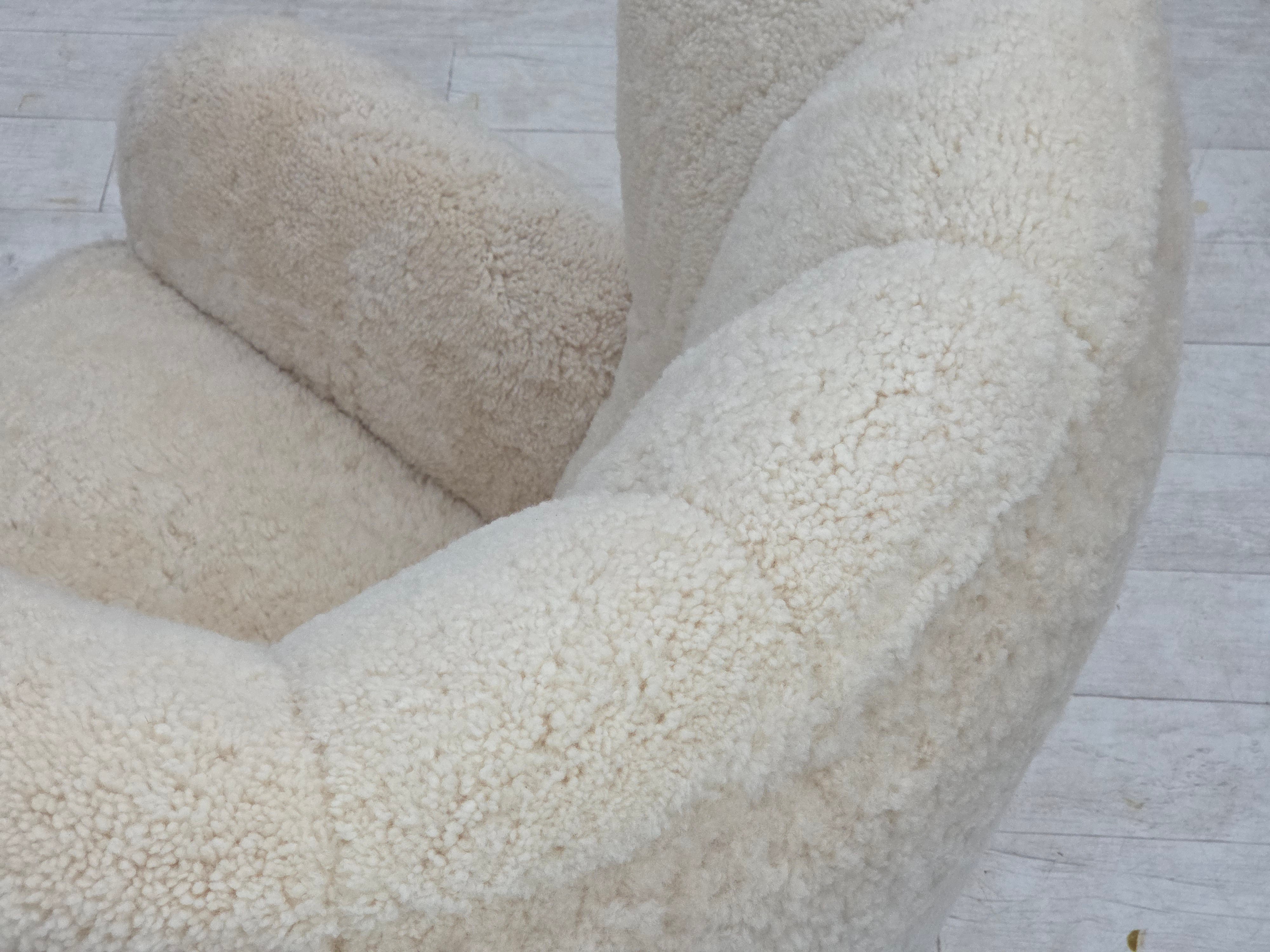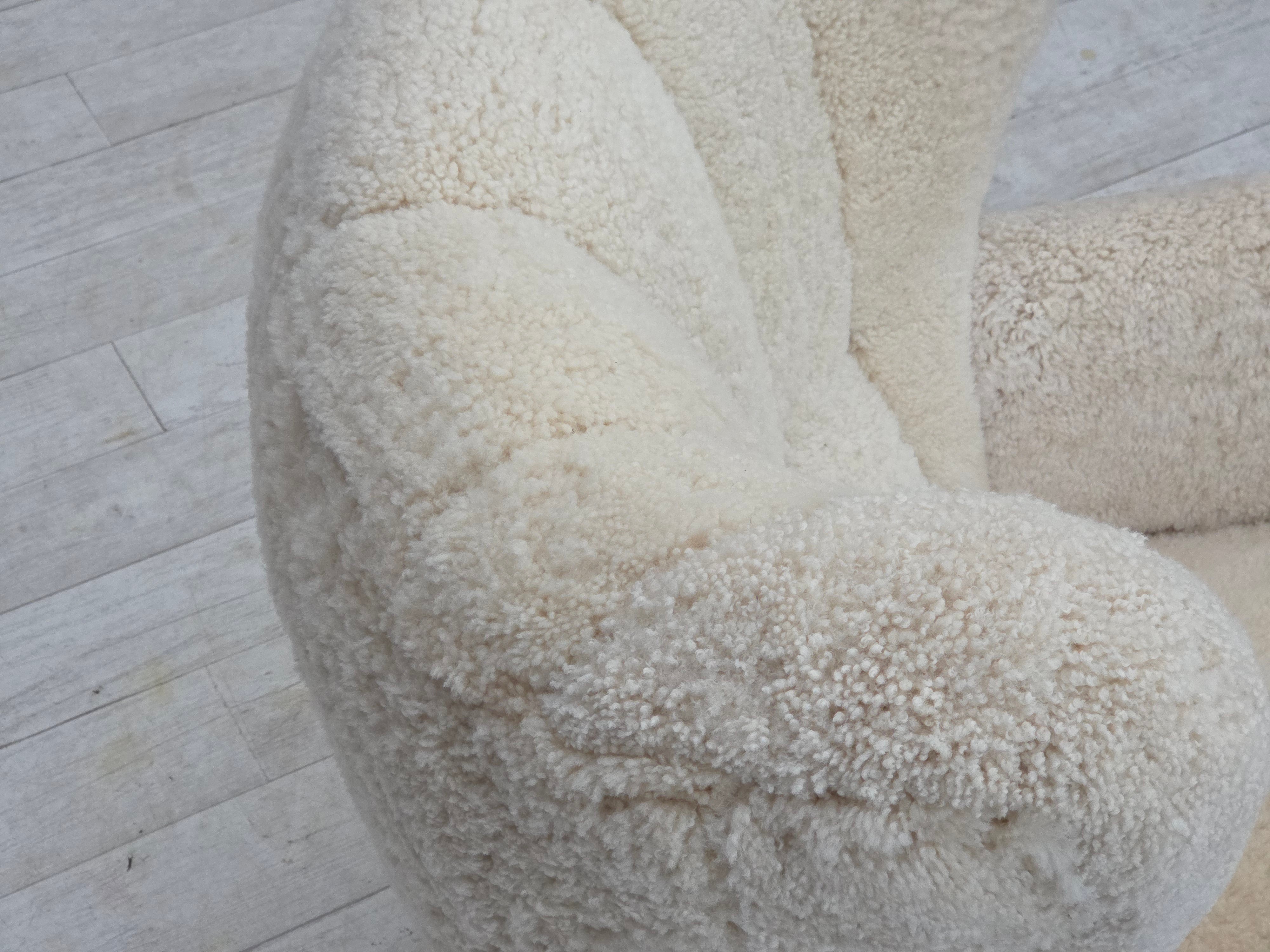 1960erne, Dansk højrygget lænestol, ægte fåreskind "Canberra", reupholsteret.